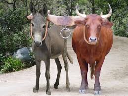 Na prática o que se espera desses animais, é que ambos conjuguem esforços numa mesma e determinada direção, orientados por seu proprietário (uma figura de Deus). Que eles sejam compatíveis no seu trabalho, tenham um mesmo procedimento, possuam uma mesma natureza, sem a qual será impossível realizar a tarefa a que estão destinados.